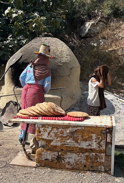 The mountains are home to the Amazigh people, more commonly known as Berber. They prefer Amazigh, which means free person, over Berber, which means barbarian, a name given to them by the Romans. The Amazigh are the indigenous people of North Africa, with roots in the region dating back to prehistoric times. Some of the women will show us how they make their traditional breads over open fire and a grill, while others demonstrate how their rugs are made. We will be invited into Iija’s home for tea. Iija is a woman I met a couple of months ago when she invited me in one day as I walked past her house. This will be a new experience for her – to host a tea for tourists – so you can imagine how excited we all are about that.
